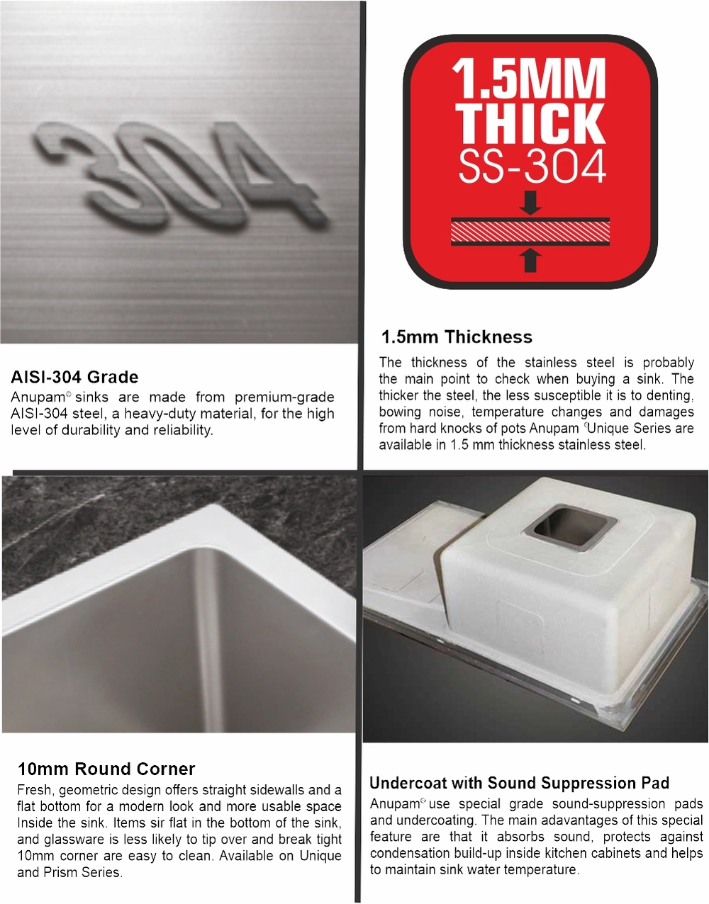 Anupam® Sinks are made from the finest nickel bearing stainless steel.